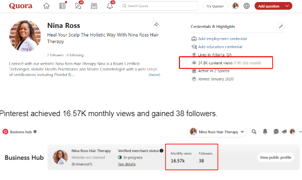 Increased Content Views and Followers over Quora and Pinterest