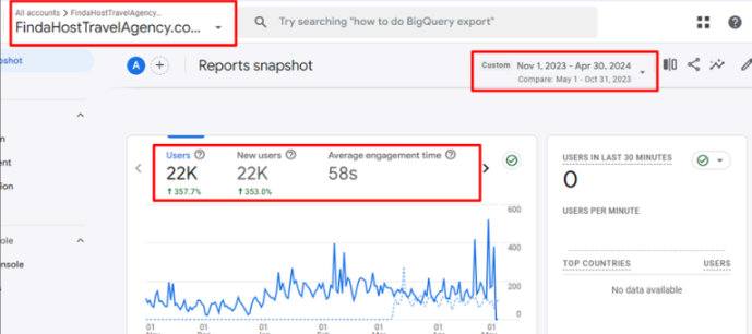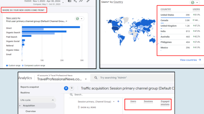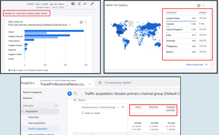 Saw a remarkable 353% surge in new users, primarily through direct traffic, with the USA being the primary source of visitors.